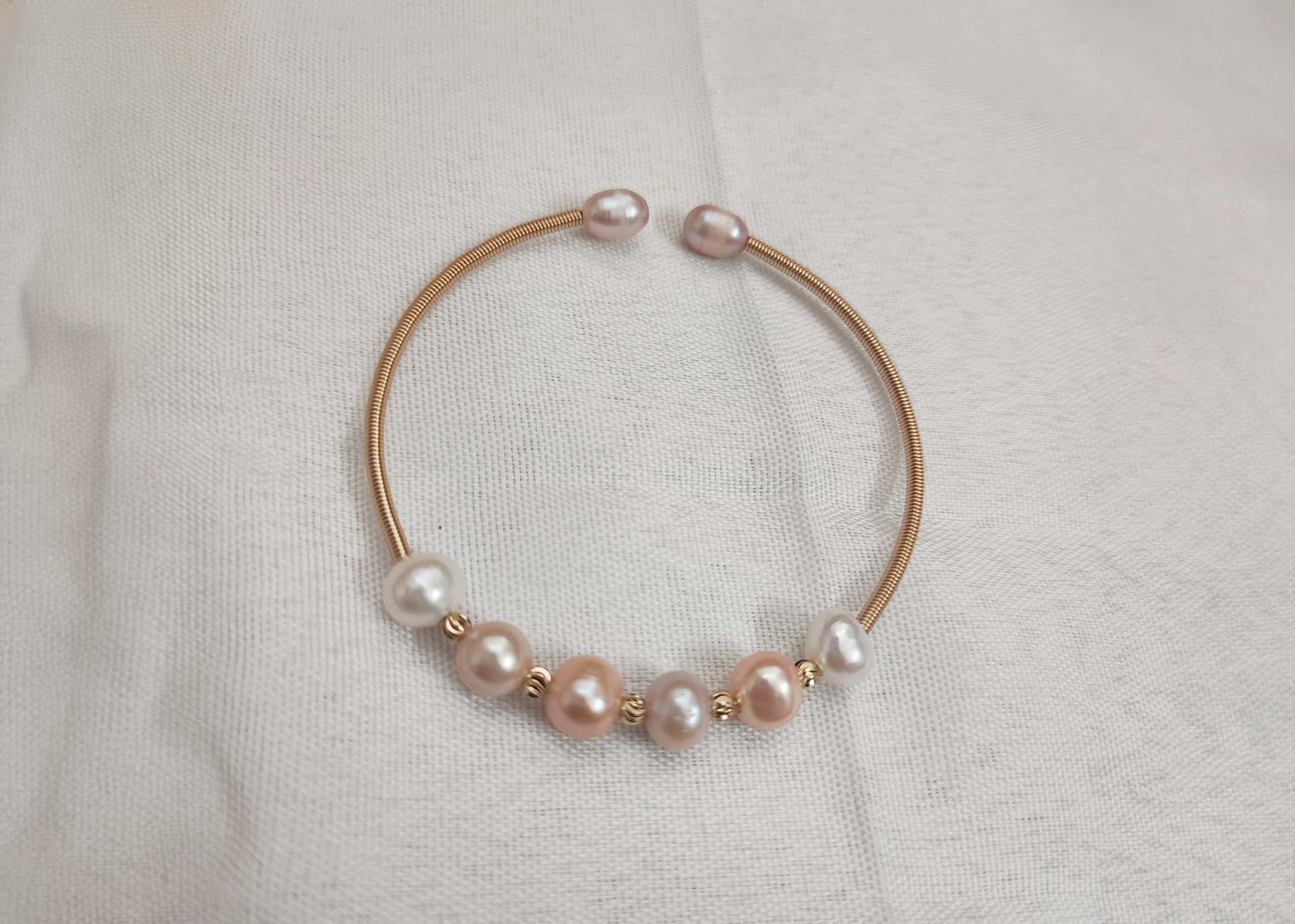 This elegant Freshwater Pearl Bracelet features lustrous, hand-selected pearls that showcase their natural beauty. With soft hues ranging from classic white to subtle pinks, each pearl is unique, adding charm and sophistication. Perfect for both everyday wear and special occasions, this bracelet is a timeless addition to any jewelry collection. Its delicate design exudes grace and elegance, making it the ideal accessory.