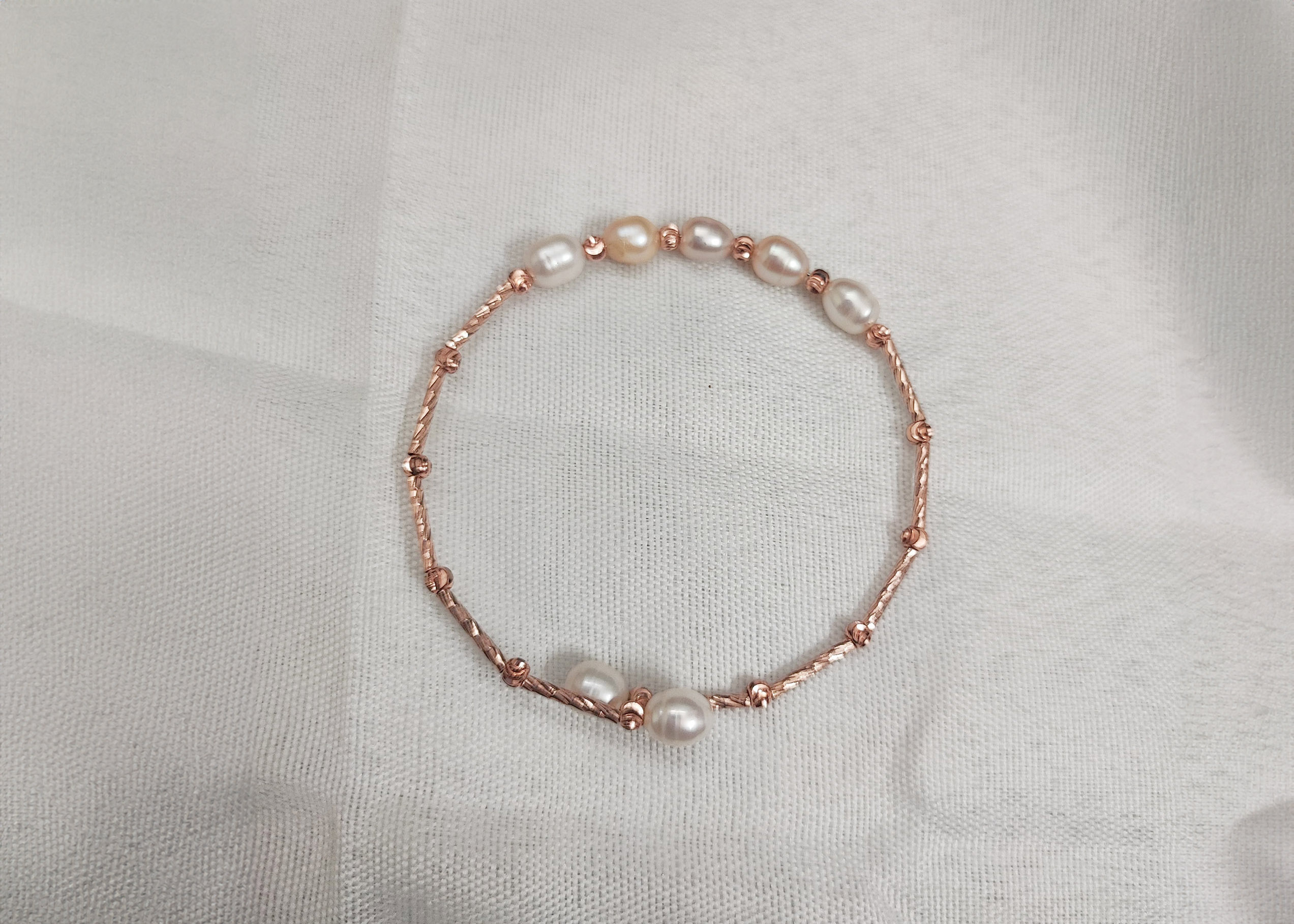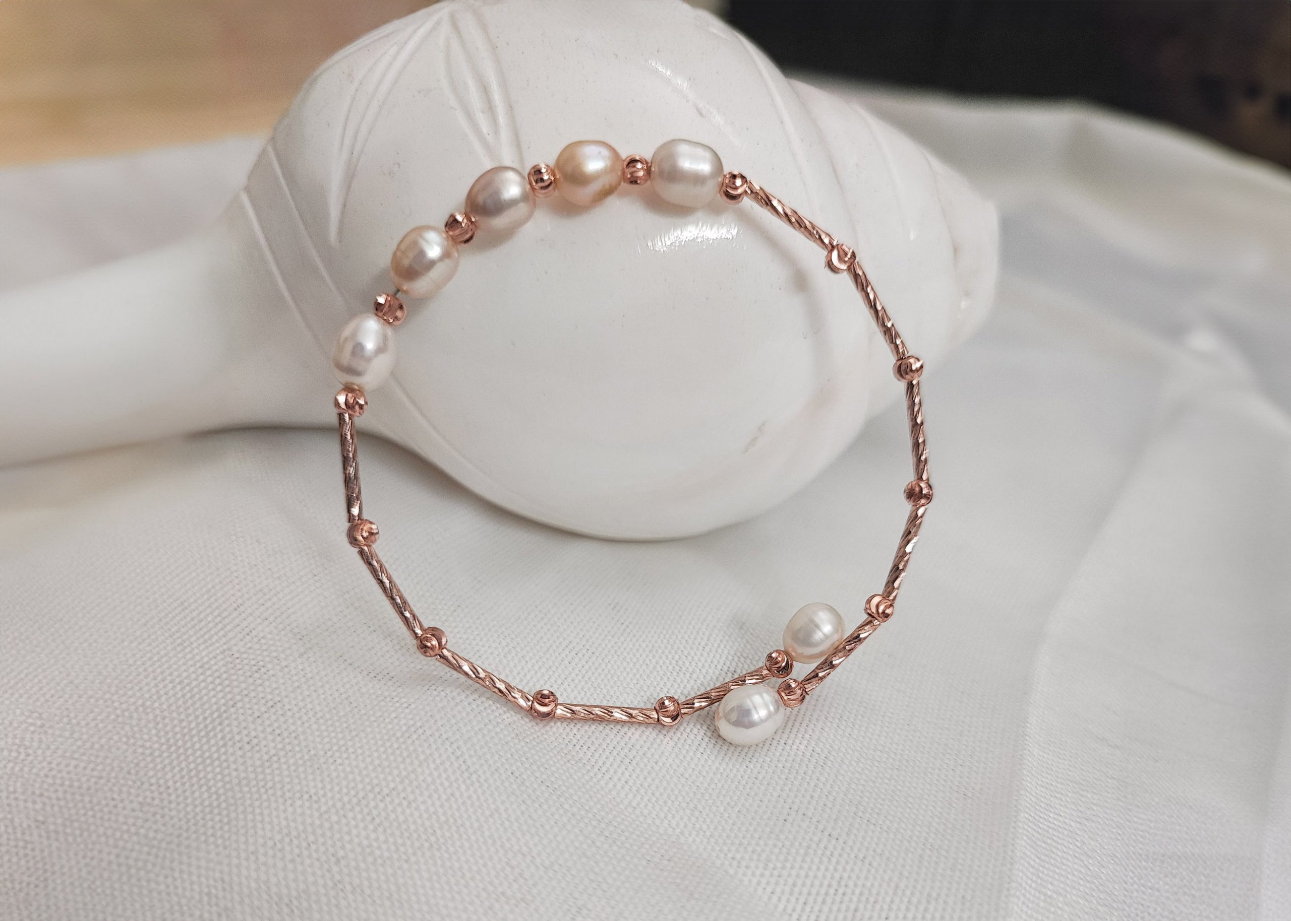This elegant Freshwater Pearl Bracelet features lustrous, hand-selected pearls that showcase their natural beauty. With soft hues ranging from classic white to subtle pinks, each pearl is unique, adding charm and sophistication. Perfect for both everyday wear and special occasions, this bracelet is a timeless addition to any jewelry collection. Its delicate design exudes grace and elegance, making it the ideal accessory.