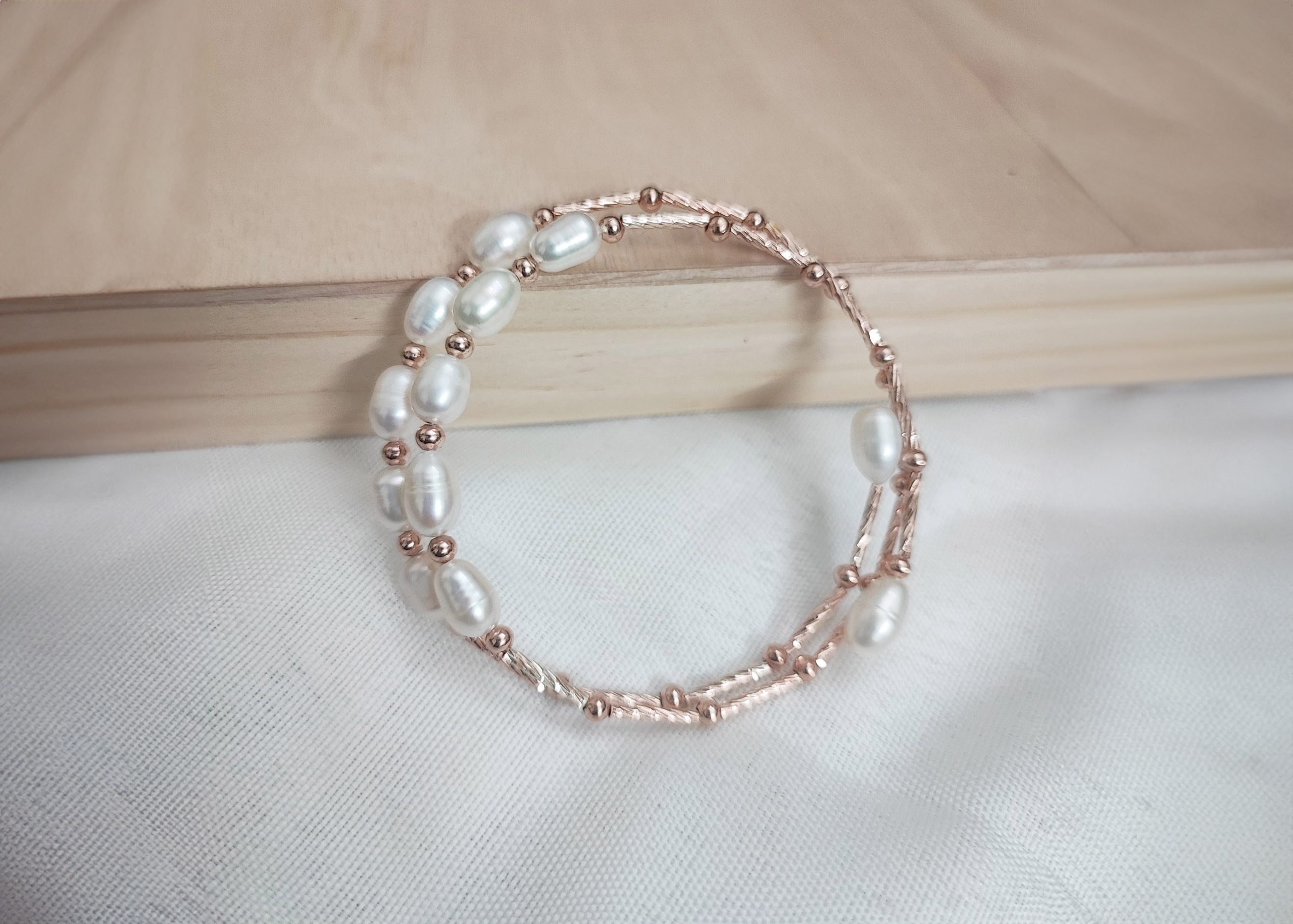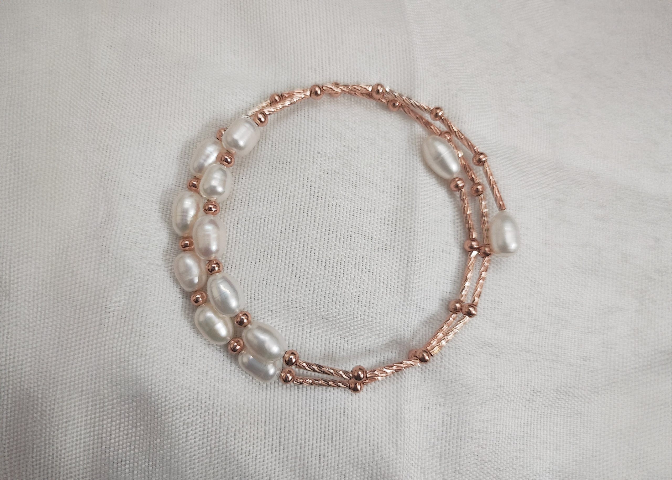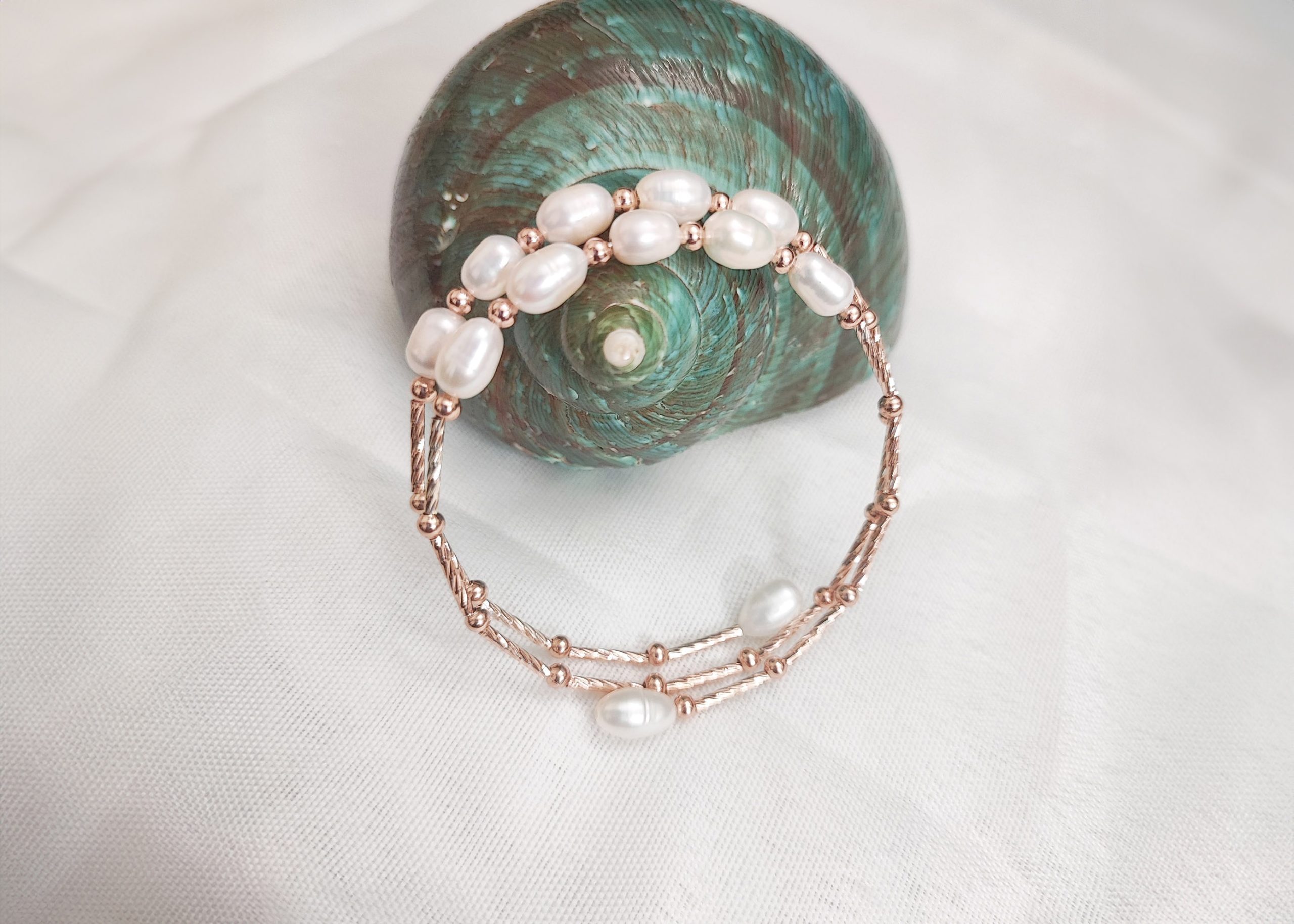 This elegant Freshwater Pearl Bracelet features lustrous, hand-selected pearls that showcase their natural beauty. With soft hues ranging from classic white to subtle pinks, each pearl is unique, adding charm and sophistication. Perfect for both everyday wear and special occasions, this bracelet is a timeless addition to any jewelry collection. Its delicate design exudes grace and elegance, making it the ideal accessory.